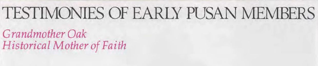 In Korea, we usually call her "Mother Mrs. Oak," but without any special mission title, she has done her mission as the historical mother of faith of our church.