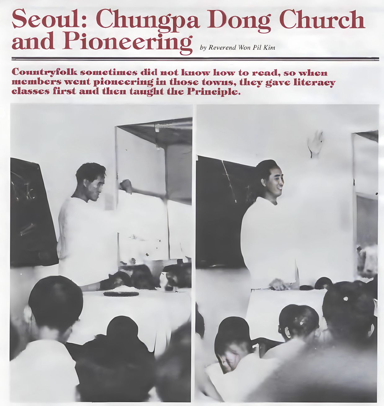 There was a great variety of members doing pioneer work. Some were around 60 years of age, and the youngest one was about 12 or 13 years old, a junior high school student. Sometimes Father paired a very young member with a very old member and sent them to a town. Old members usually didn't know how to give lectures, but they would support the other person through their prayers. The young members, junior high school students, learned Principle along with the adult members, so when they went pioneering, they gave Principle lectures. Countryfolk sometimes did not know how to read, so when members went pioneering in those towns, they gave literacy classes first and then taught the Principle.