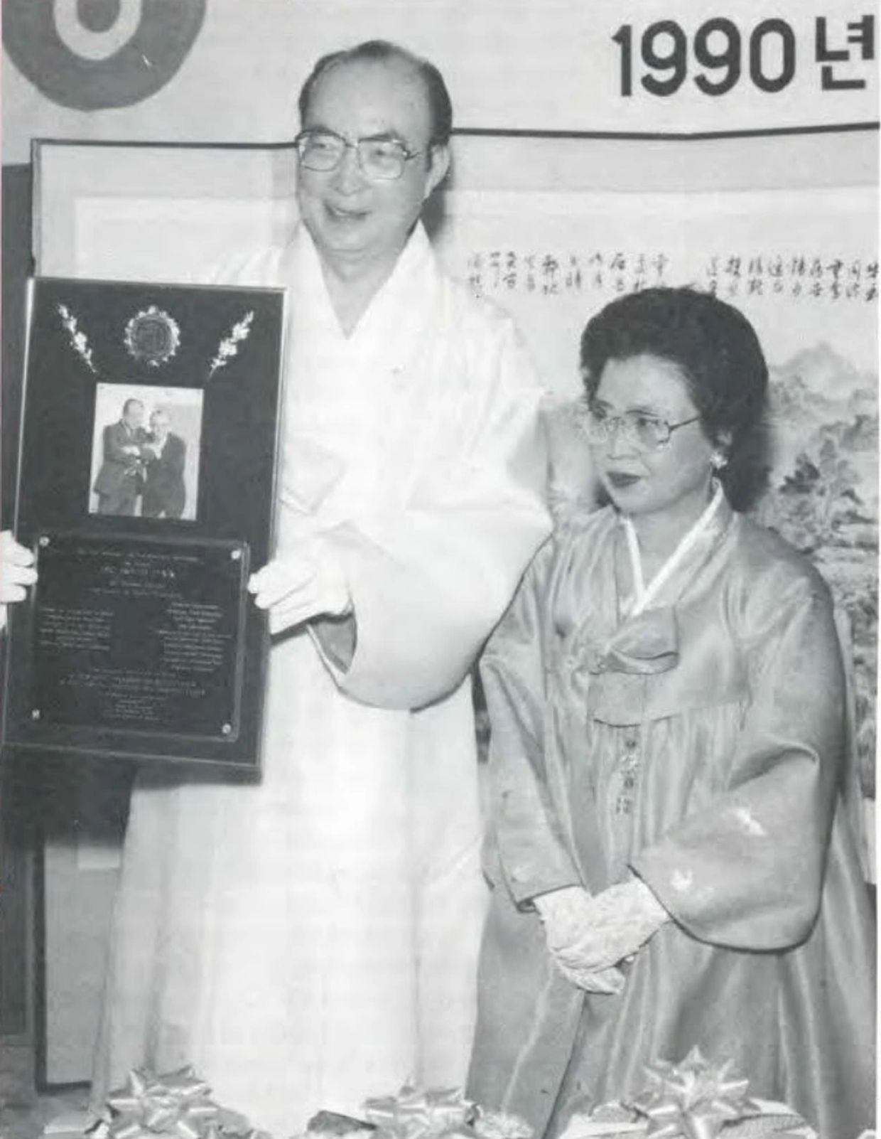 -excerpted from Dr. James Baughman's speech during the celebration of Dr. Pak's 60th Birthday in San Francisco on August 18, 1990, as he presented a plaque (left) to Dr. Pak enumerating his record of service to True Parents and to America.