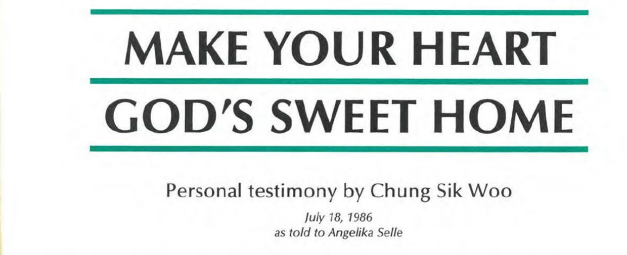 When I returned to the church in Seoul I worked in the witnessing department. My mission was to transcribe Father's speeches and send them to the outlying church centers. So much spiritual power was flowing through me that for a while I had a hard time controlling it. Through the truth I was able to overcome and dominate the strong influence of the many spirits who wanted to work with me.