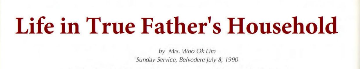 Ye Jin Nim and Hyo Jin Nim sacrificed so much. Now, in America and throughout the world many blessed children are growing up in humble circumstances, but the situation of the True Children was much more humble than the situation and housing of today's blessed children. Please imagine. In 1973, the True Family moved to America from Korea. After that, as our Korean Church's financial situation became better, many Korean brothers and sisters brought fruit and nice food to the Chôngpa-dông Church. But I always re-membered Ye Jin Nim, Hyo Jin Nim, and True Parents, so the staff and I could never eat that fruit. I carry in my heart an unforgettable pain because before Hyo Jin Nim and Ye Jin Nim came to America, they received such humble food and living circumstances in Korea. When I see a picture of True Family, my eyes always go first to Ye Jin Nim and Hyo Jin Nim. Because we couldn't serve them good meals, they are smaller than their younger brothers and sisters. I always feel guilty when I see Ye Jin Nim and Hyo Jin Nim because I did not serve them well enough. I wish I had gone out and borrowed money at that time in order to serve them better. My responsibility was head of the kitchen staff. Because I couldn't serve True Parents and Hyo Jin Nim and Ye Jin Nim well, I always repent, and today I also painfully repent in front of you about this. I know that in America and around the world many couples are now pioneering blessed family life, and sometimes it is not easy financially. But if it is really difficult, please remember this testimony about Hyo Jin Nim's and Ye Jin Nim's early life in Korea. This will help to comfort your heart.