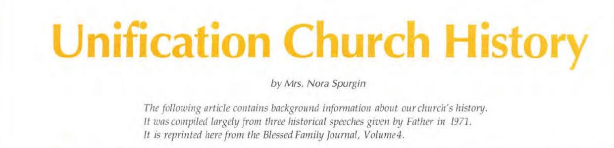 It is not news to us that the many failures in this early foundation were due to an inability to unite. During World War II and thereafter, Korean Christians suffered greatly, made incredible personal sacrifices, labored endlessly, and carried out directions from spirit world faithfully and obediently; yet in the end, one foundation after another was lost because of the unwillingness to unite with another person or group. Father often made special conditions personally so that he could inherit the foundations and thereby salvage the great indemnity which had already been paid. Even the establishment of the Unification Church was not God's original plan, but rather an alter-nate way to preserve the foundation of incredible suffering and sacrifice which had already been made. In this way a small group of early members made the conditions to inherit (and thus save) God's carefully nurtured restoration providence.